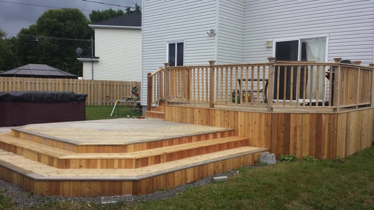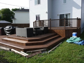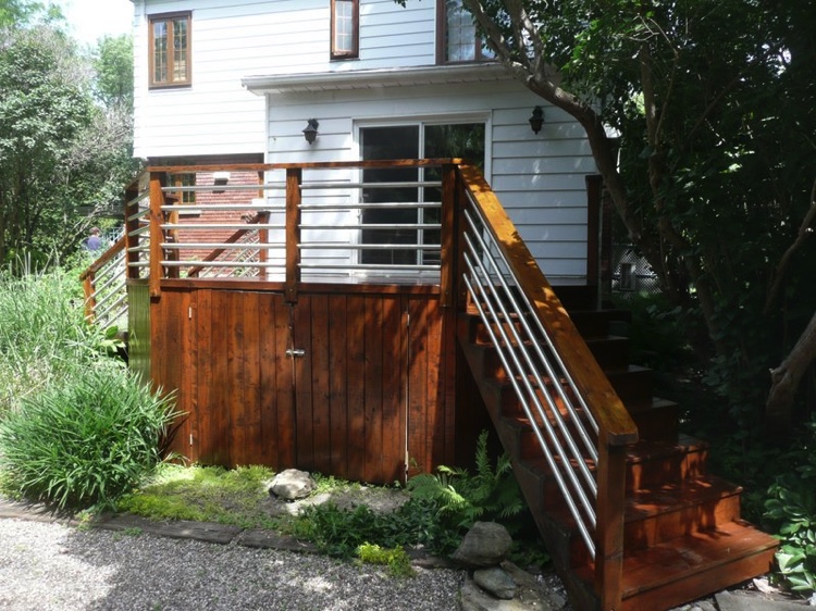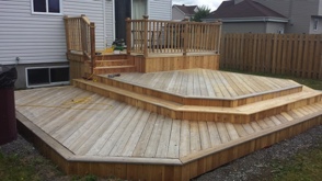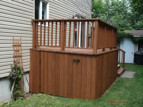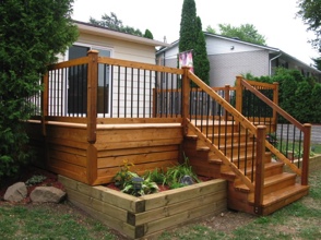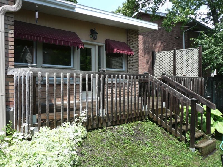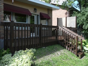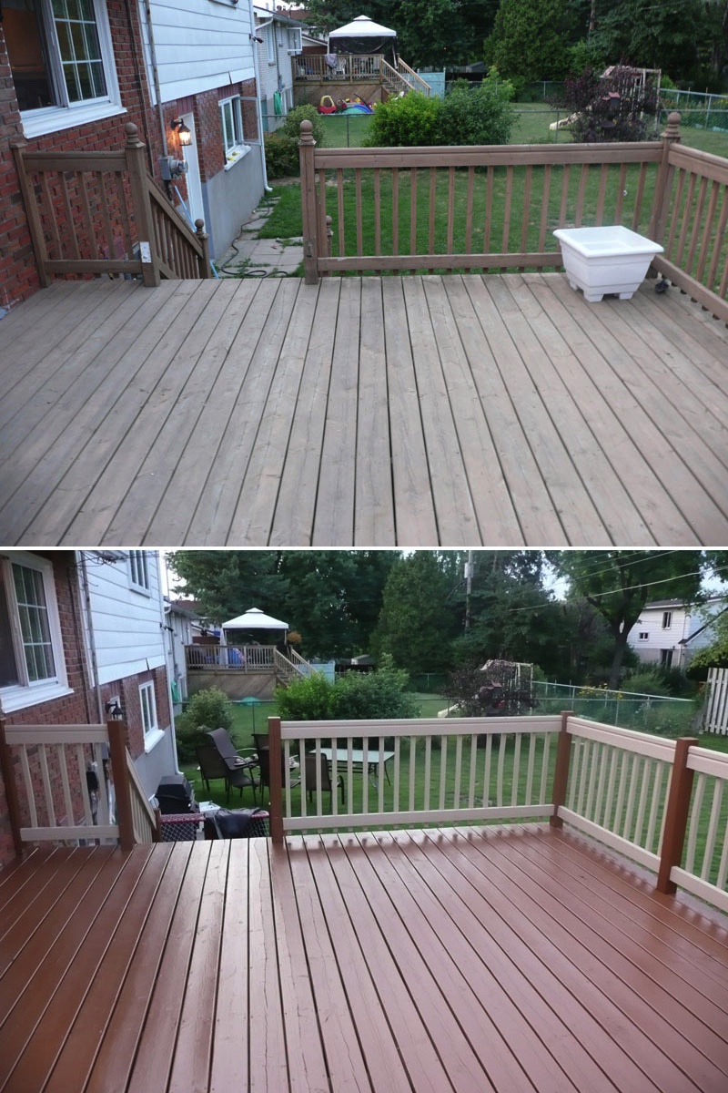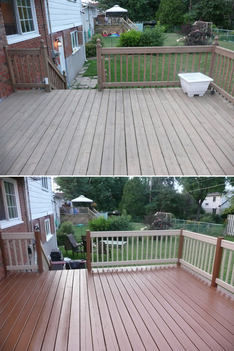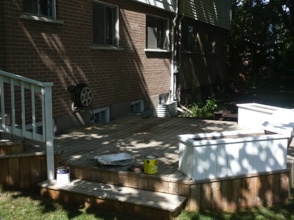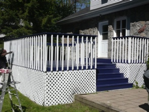 Decks in Quebec, as many of you know, are hard to maintain. A deck's large horizontal surface gets worn by the varied weather we get here and it's hard to keep it looking good from year to year. I don’t believe in starting deck work too early in the spring for the obvious reason...moisture. At first glance and even to the touch, it looks and feels dry, but I assure you, the wood is still too wet inside. The best time to do deck work is from late May until mid fall. I feel the best jobs start with the preparation. Whether I pressure-wash or machine sand your deck to bring back the wood’s vibrancy before staining, you can’t expect the new stain to last if it’s going on top of an old, peeling paint surface. Also, I believe in using top of the line products; Sikkens, Cabot and Flood are three products I use for semi-transparent wood imitation colour. For a solid stain, I suggest Flood and various other highbred stains that are environmentally friendly and formulated for today’s ever-changing weather.