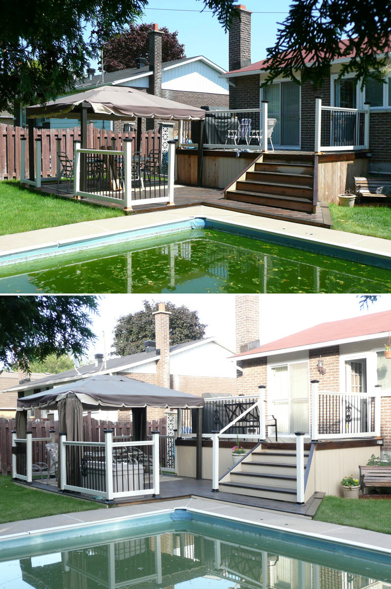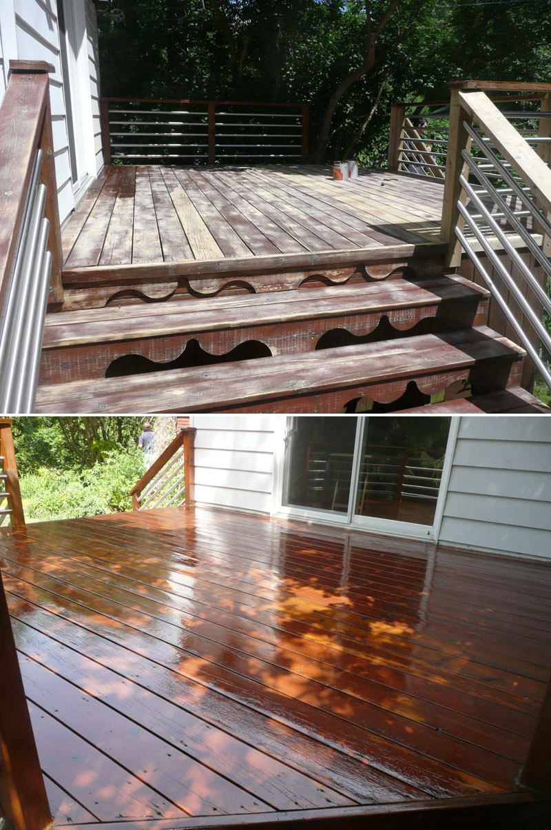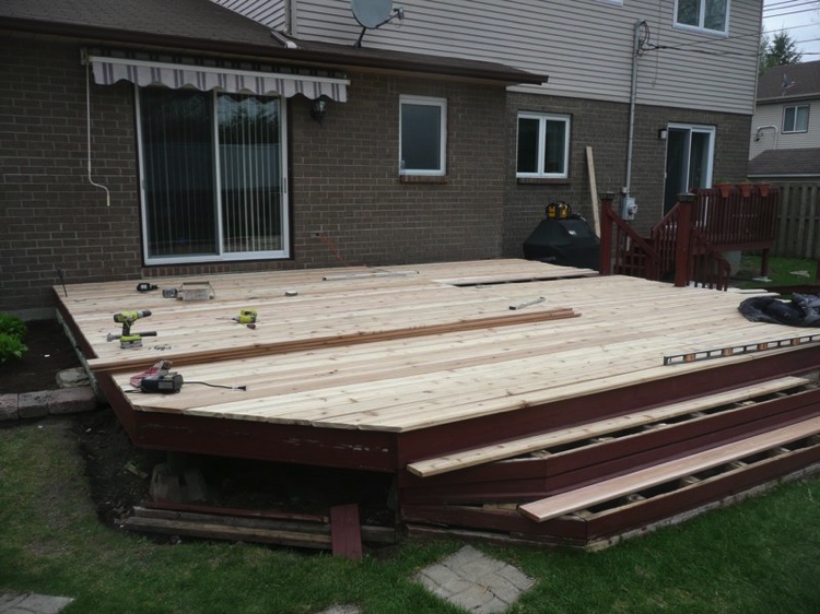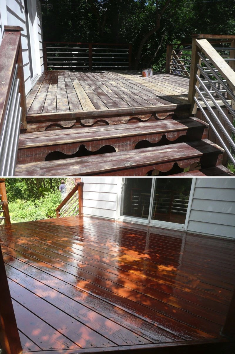 Decks in Quebec, as many of you know, are hard to maintain. A deck's large horizontal surface gets worn by the varied weather we get here and it's hard to keep it looking good from year to year. I don’t believe in starting deck work too early in the spring for the obvious reason...moisture. At first glance and even to the touch, it looks and feels dry, but I assure you, the wood is still too wet inside. The best time to do deck work is from late May until mid fall. I feel the best jobs start with the preparation. Whether I pressure-wash or machine sand your deck to bring back the wood’s vibrancy before staining, you can’t expect the new stain to last if it’s going on top of an old, peeling paint surface. Also, I believe in using top of the line products; Sikkens, Cabot and Flood are three products I use for semi-transparent wood imitation colour. For a solid stain, I suggest Flood and various other highbred stains that are environmentally friendly and formulated for today’s ever-changing weather.